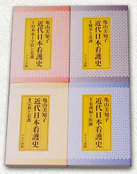 | 亀山美知子 | 1巻 日本赤十字社と看護婦 A5判/315頁/4,000円 ISBN4-8107-0162-X/83.7発行 2巻 戦争と看護 A5判/276頁/4,000円 ISBN4-8107-0187-5/84.9発行 3巻 宗教と看護 A5/288頁/4,000円 ISBN 4-8107-0215-4/85.08発行 4巻 看護婦と医師 A5/352頁/4,000円 ISBN 4-8107-0218-9/85.08発行 |